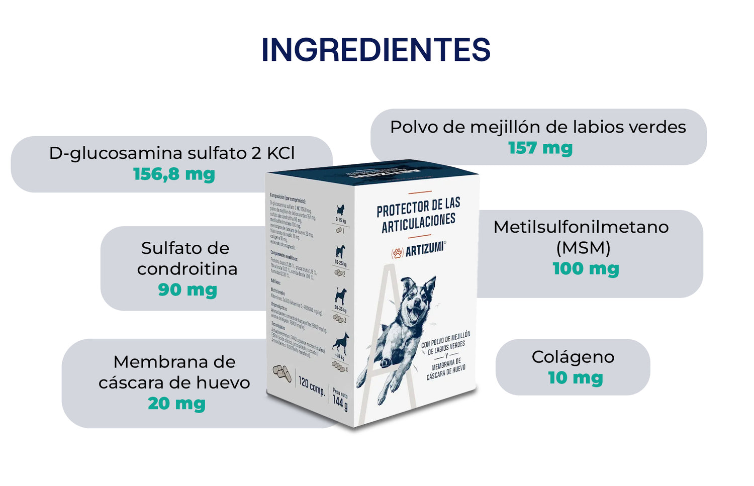 La fórmula de Artizumi contiene una mezcla de ingredientes que aportan nutrientes esenciales para la salud articular de los perros.